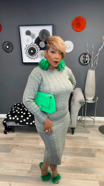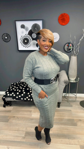 Cable knit sweater set.  Skirt come with front pocket and oversized shirt.