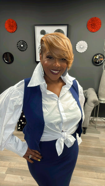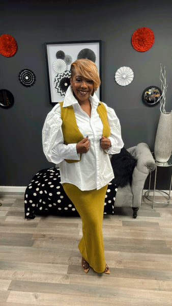 2 Piece Sweater set, skirt being long and vest.  Has lots of stretch.  Wearing a Large. Shirt not included.