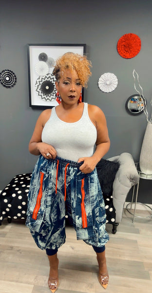 Acid washed harem, zipper pants with pockets. Wearing S/M