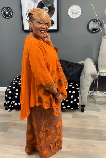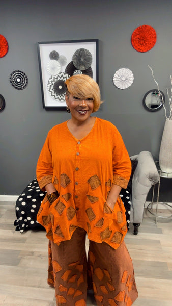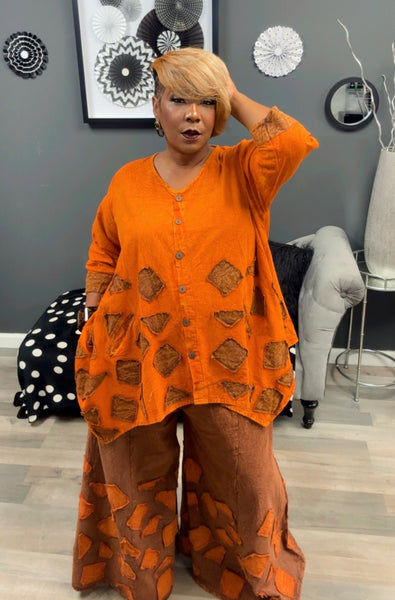 2 Piece set that has aligned top and wide leg pants with pockets. Come with belt.